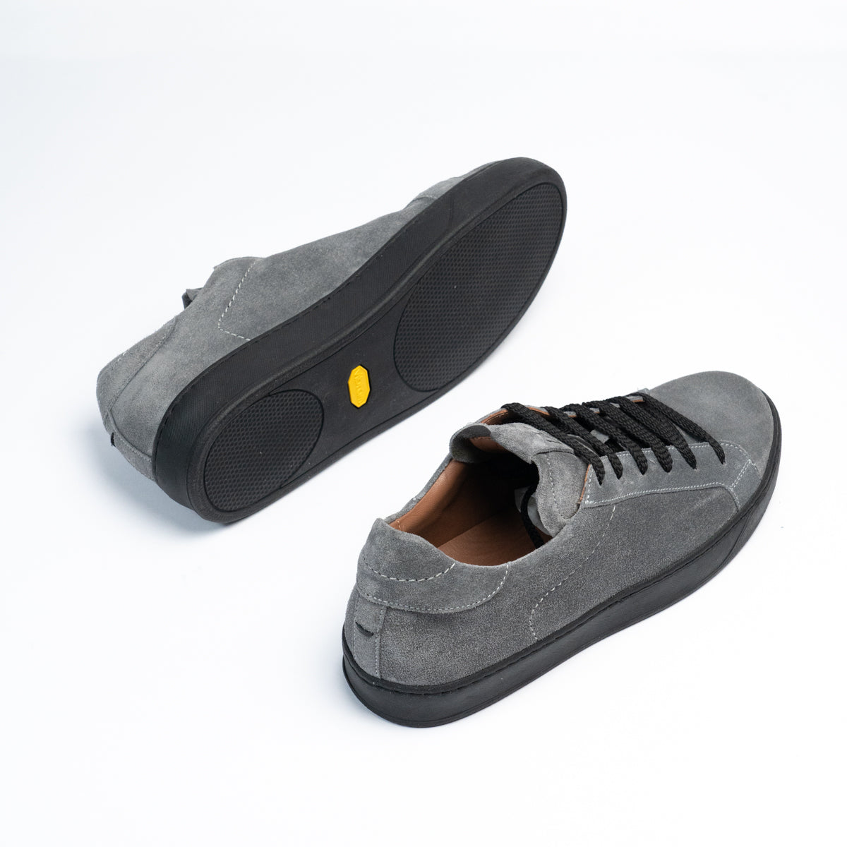 Sneakers da uomo realizzate in pregiata pelle di vitello scamosciata. L'interno è completamente foderato in pelle, con un plantare fusbett estraibile alto 1 centimetro per un comfort personalizzabile. La suola in gomma, firmata Vibram, è cucita integralmente alla tomaia, garantendo una durabilità ottimale. Queste sneakers uniscono stile e qualità, offrendo un design raffinato e un comfort superiore per un look casual elegante.