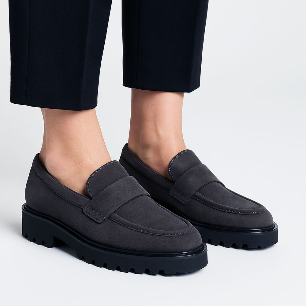 Women's loafer crafted from premium suede leather, embodying a perfect blend of elegance and practicality. The design features a concealed elastic under the flap, ensuring a quick and effortless fit while maintaining a refined and polished look.